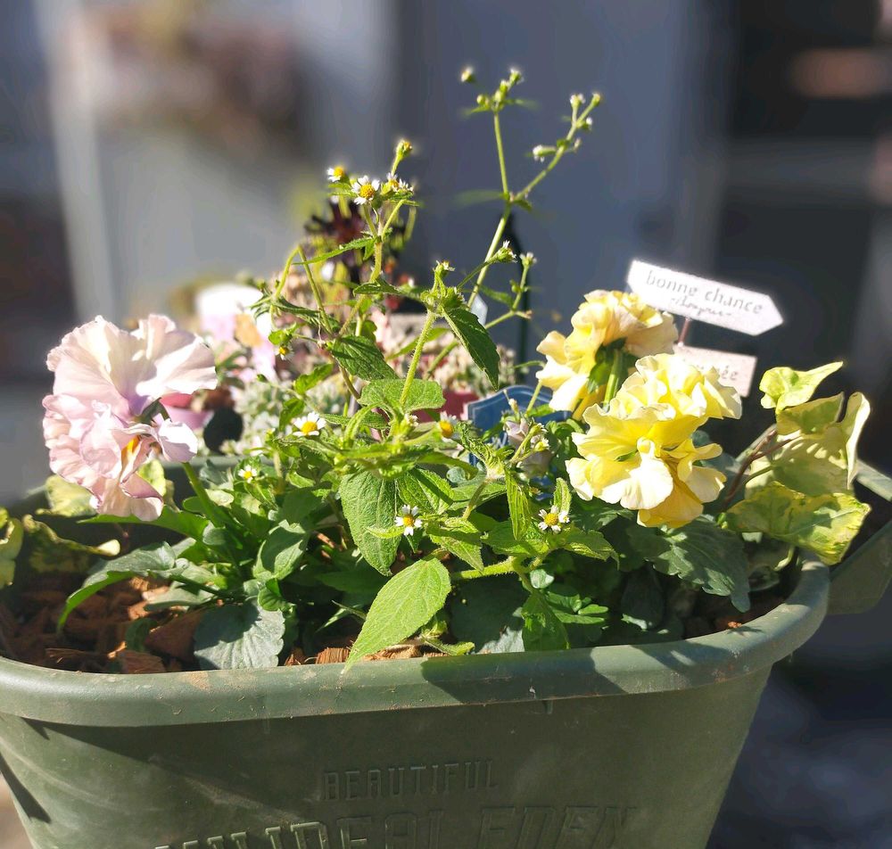 可愛い花が咲く懐かしい感じがする雑草と植え付けました。