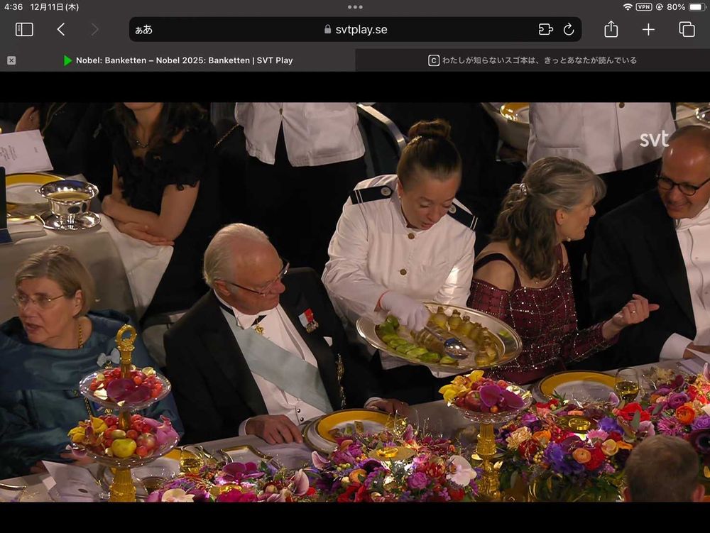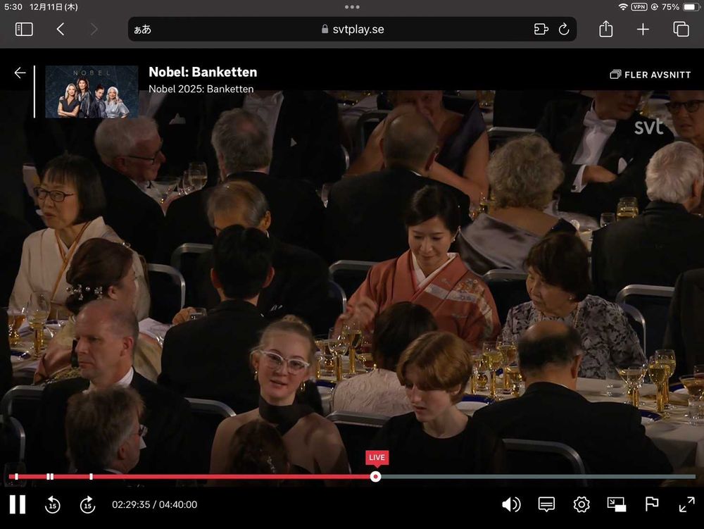 今晩は 1000人ぐらいいるらしいですよ ノーベル基金に大口で寄付した人も呼ばれているみたいです