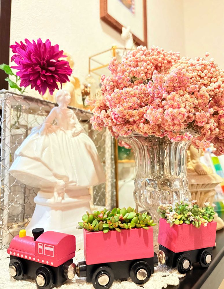 可愛い💠赤電車🚌に寄せ植え春が楽しみですね😉✨