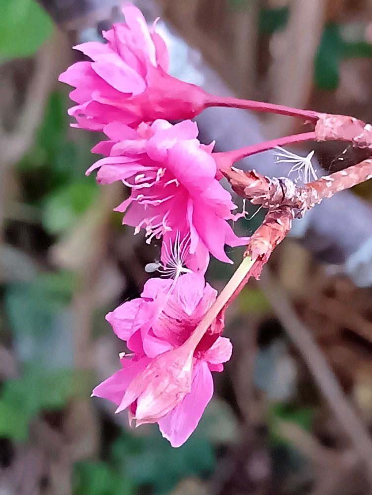 ①②たった3輪、可愛いヤエカンヒザクラ見つけました🌸🌸🌸