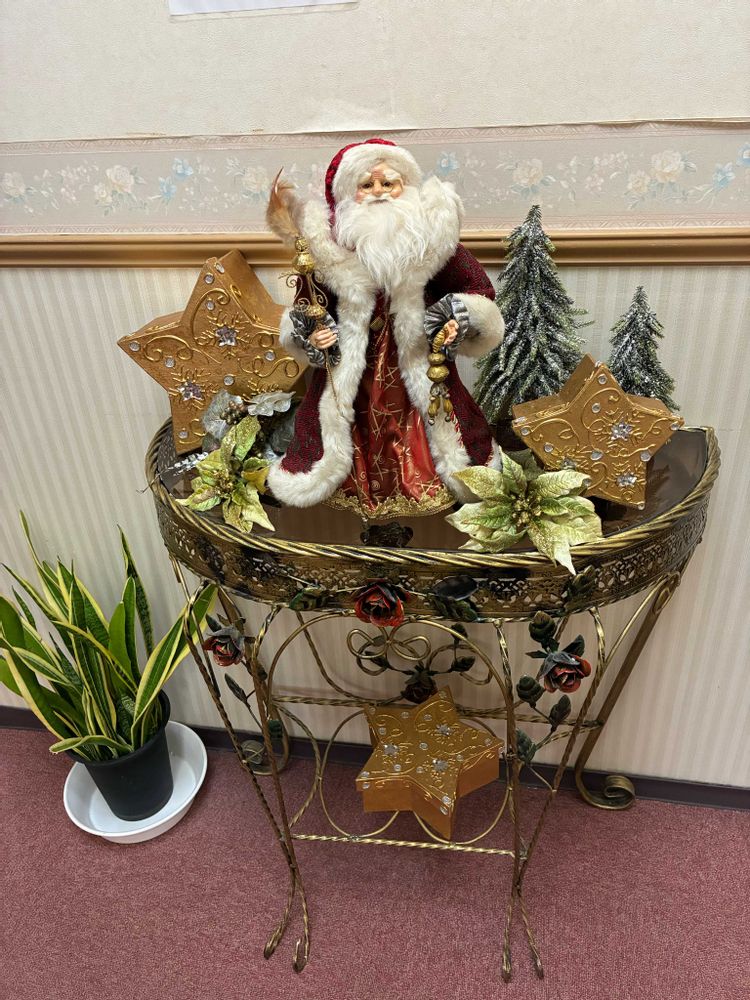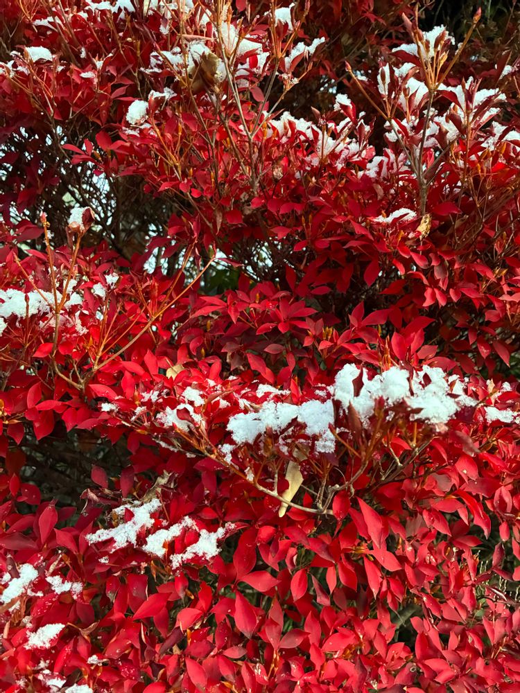 ①市内の病院の待合室のサンセベリアとサンタさん。気持ちがホッとになりました。②先日の雪にピンク🩷のサザンカと真っ赤🟥なドウダンツツジが彩りを添えていました。