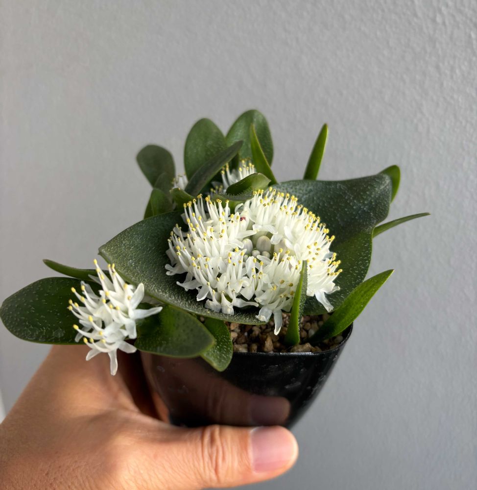 マッソニア・テネラが咲き出しました。球根の充実に合わせて花も大きくなってきました。純白の可愛いマッソニアです