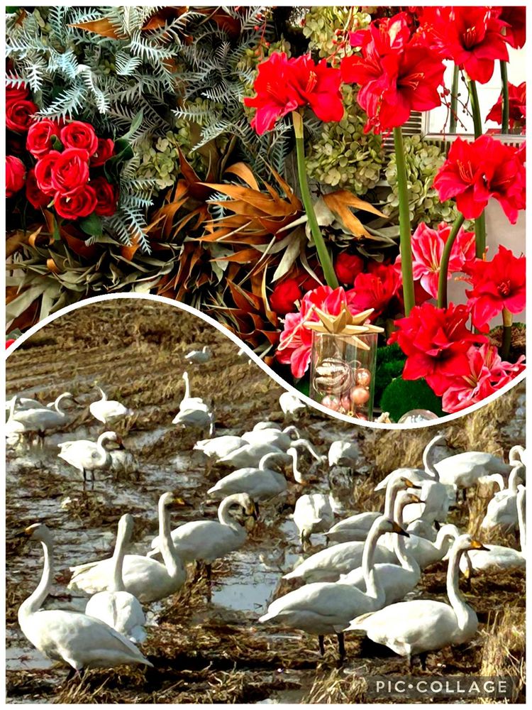 北国の白鳥🦢も田んぼの中で食事タイムです