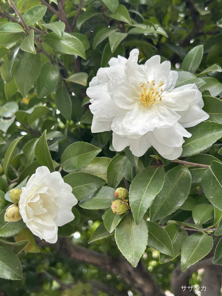 サザンカ,白い花,犬の散歩の投稿画像