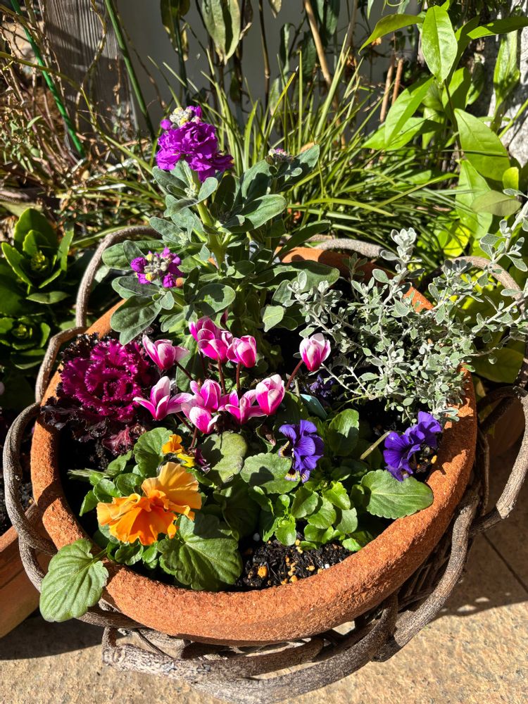 玄関の寄せ植えが少しだけ元気に咲いています❁*.:。❁ ♡
