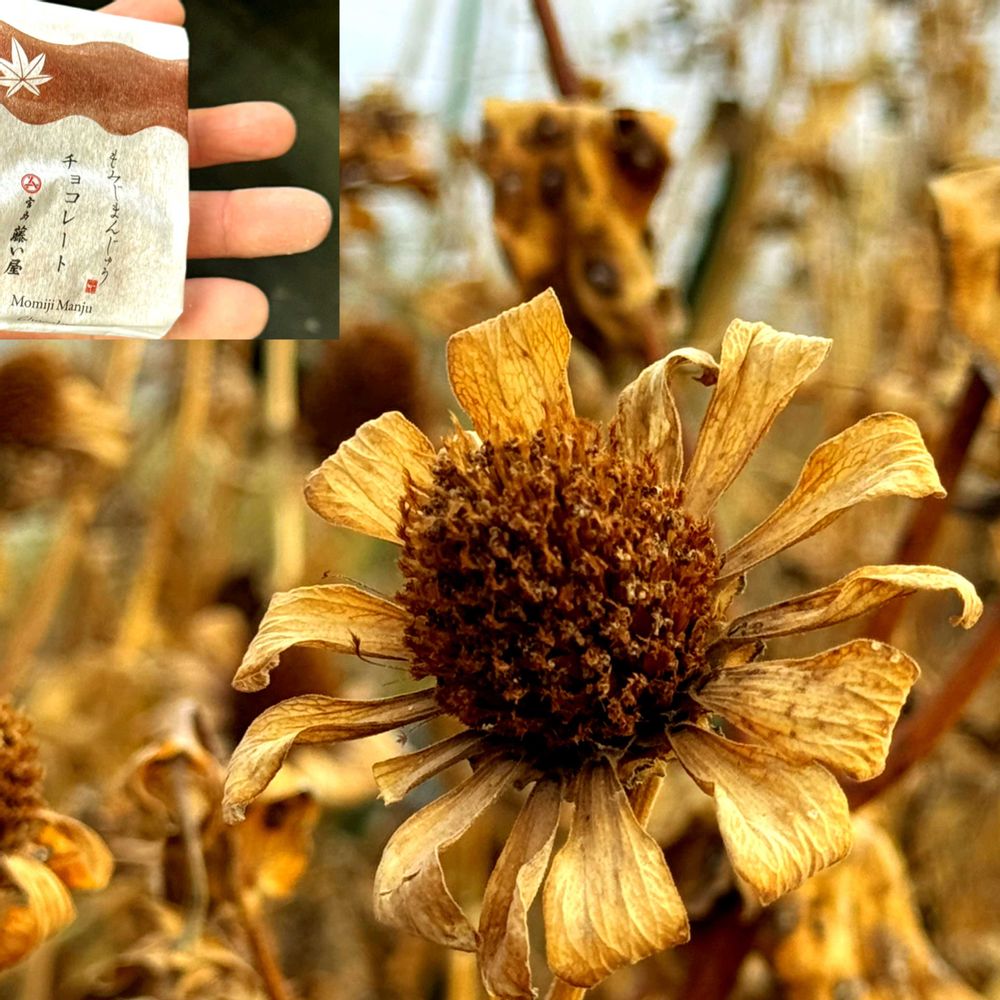 チョコレート色のヒャクニチソウは天然ドライフラワーかぁ😆
