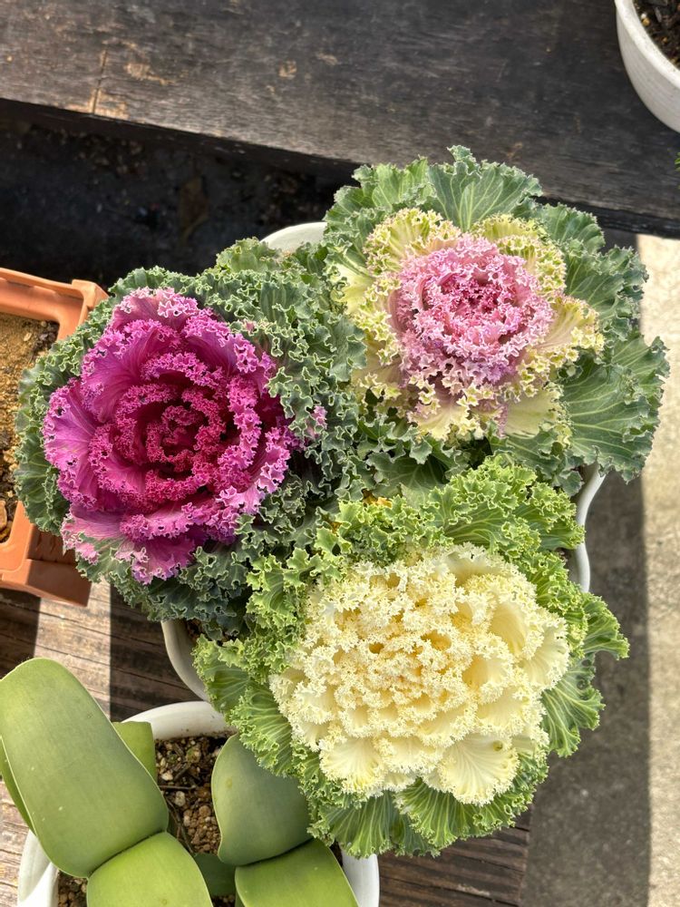 葉牡丹は、買うつもりはなかったのですが、1つ100円だったので衝動買いで3色寄せにしちゃいました🤣