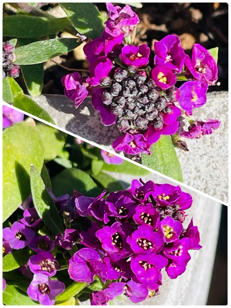 アリッサムはいつも寄せ植えの脇役にしてるけど、こんなふうにいろんなアリッサムを植え込むなんて考えもしなかったわ😍