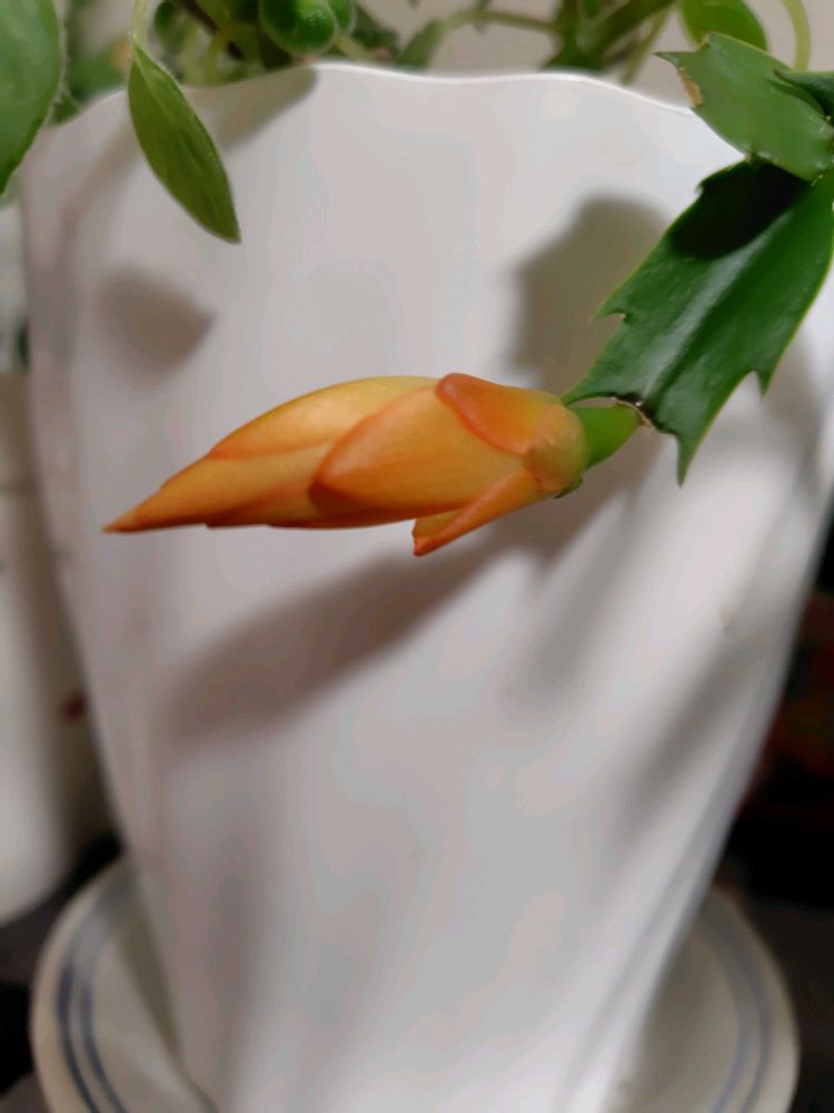 ①淡いアプリコットカラーのシャコバサボテン…昨日の今日のお花だったんですね💦 今年は短日処理したので蕾がいっぱい出て来ました🤗