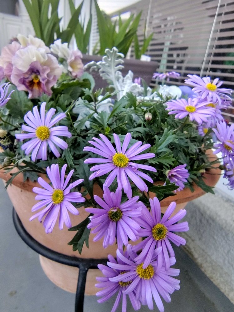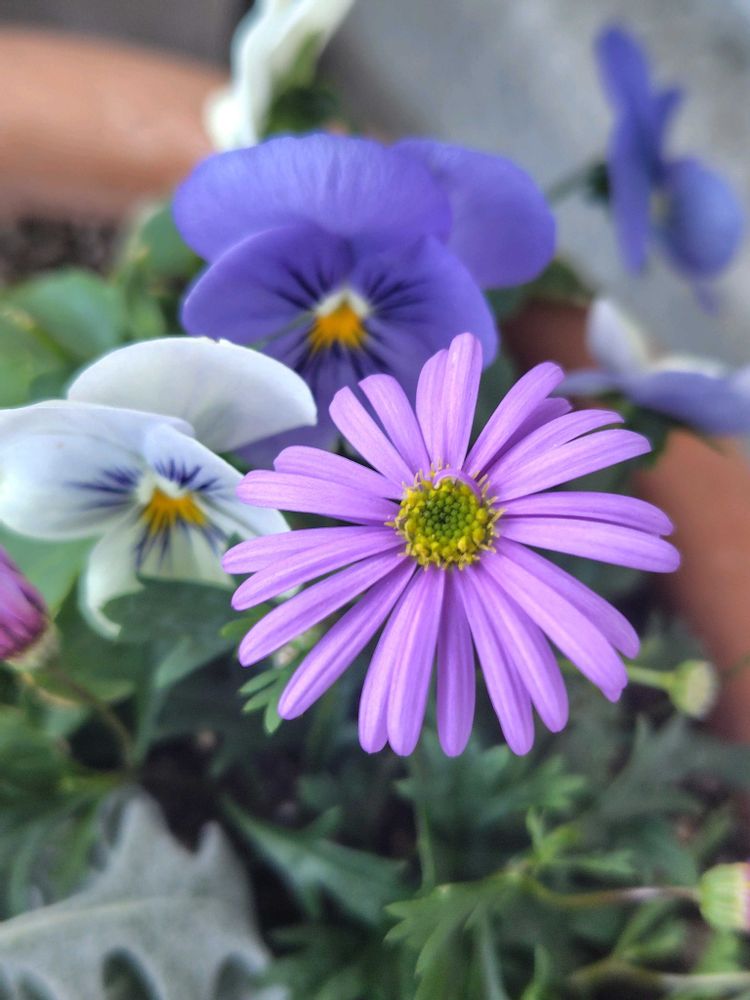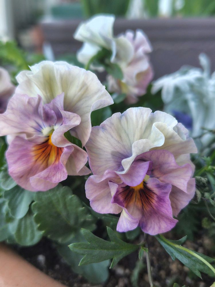 ②〜⑤ビオラ アイクルールとソルベブラキカムの寄せ植え(後方にチューリップを仕込んであります)