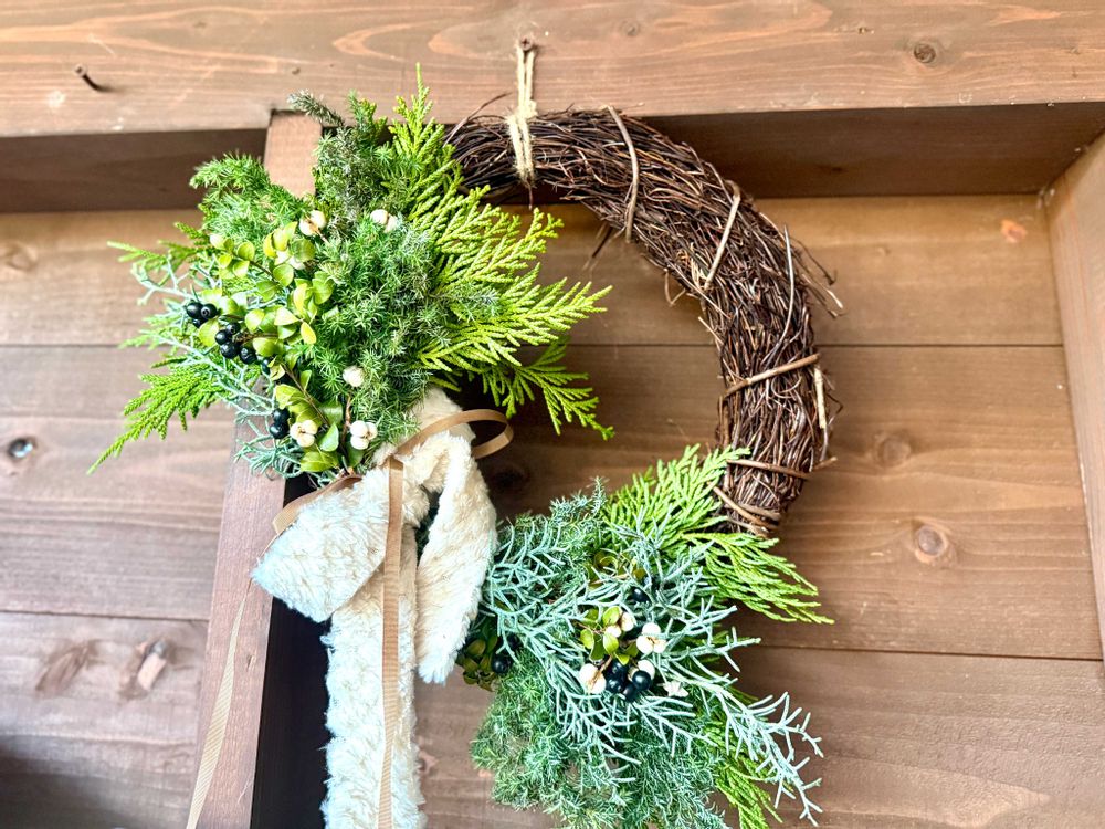 定番のドライリースもいいけど、フレッシュで華やかさのある花のリースもステキ!