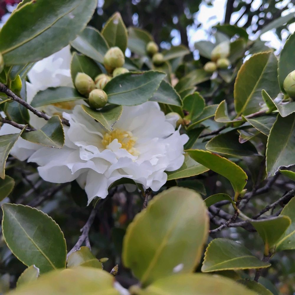 あまりに…真っ白なサザンカさん…🤍🤍🌿🤍🤍🌿