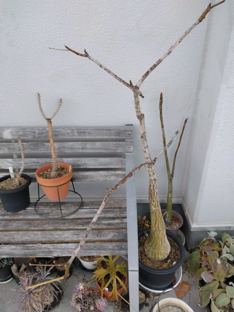 ボンバックス外でも冬越し可能なのは実証済みなんですが、なんか幹が汚くなってる気がしてます😅そりゃ傷みますよね〜