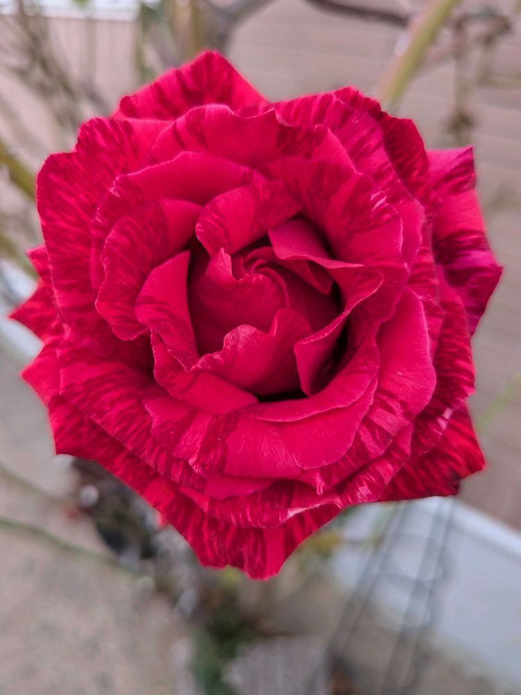 赤いお花により濃い赤のストライプが綺麗に入ったバラさんですね🌹