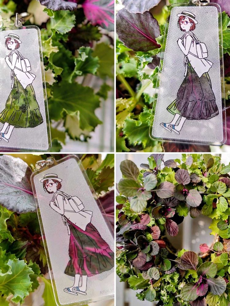 直蒔き葉牡丹リースは、七変化。少しずつ色の違う葉っぱをまとうお散歩ちゃん達。