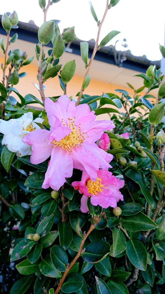 植えた覚えがないピンクの山茶花が咲いて良かったですね💕