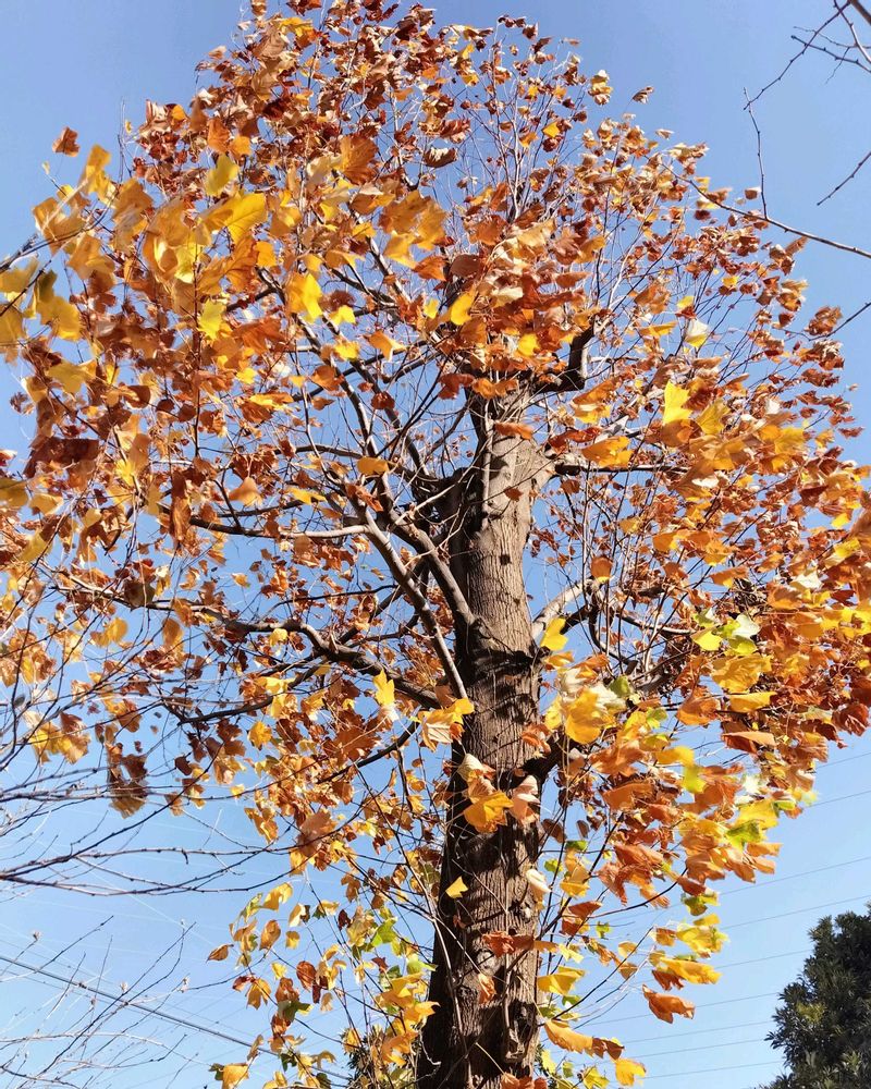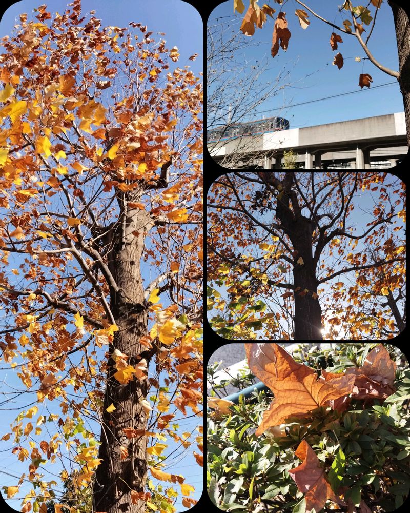 昨日ホームセンターの帰り花友さんに教えて頂いたユリノキの紅葉見に🚲️少し遅かった💦落葉🍂も綺麗でした。