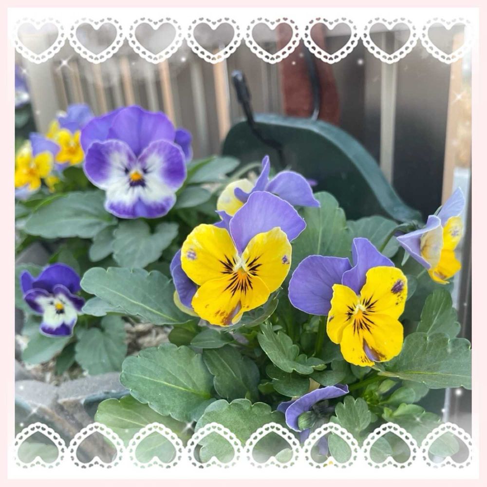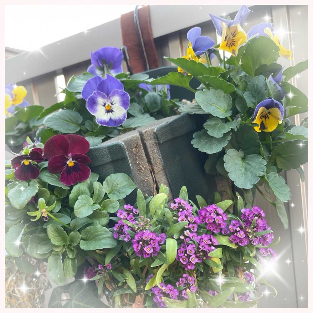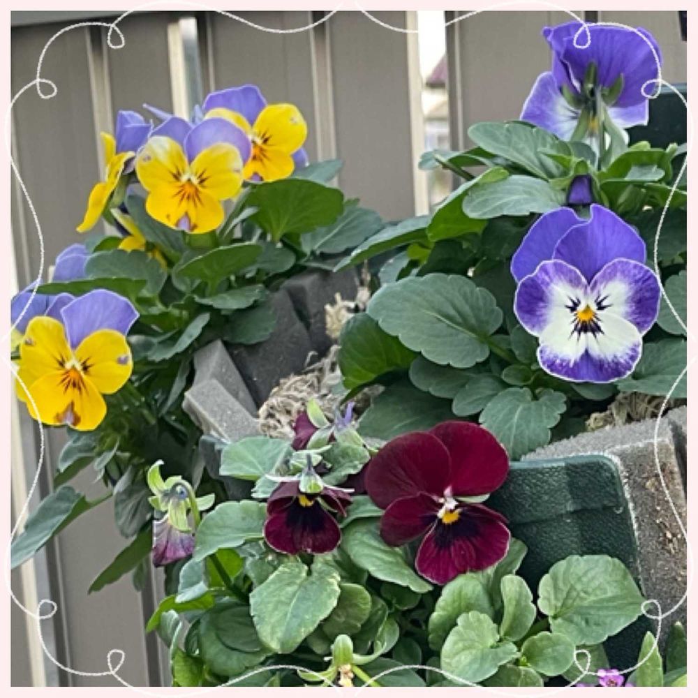 ハンギングのビオラが元気よく咲いていますね🎶🎶