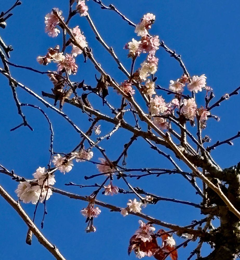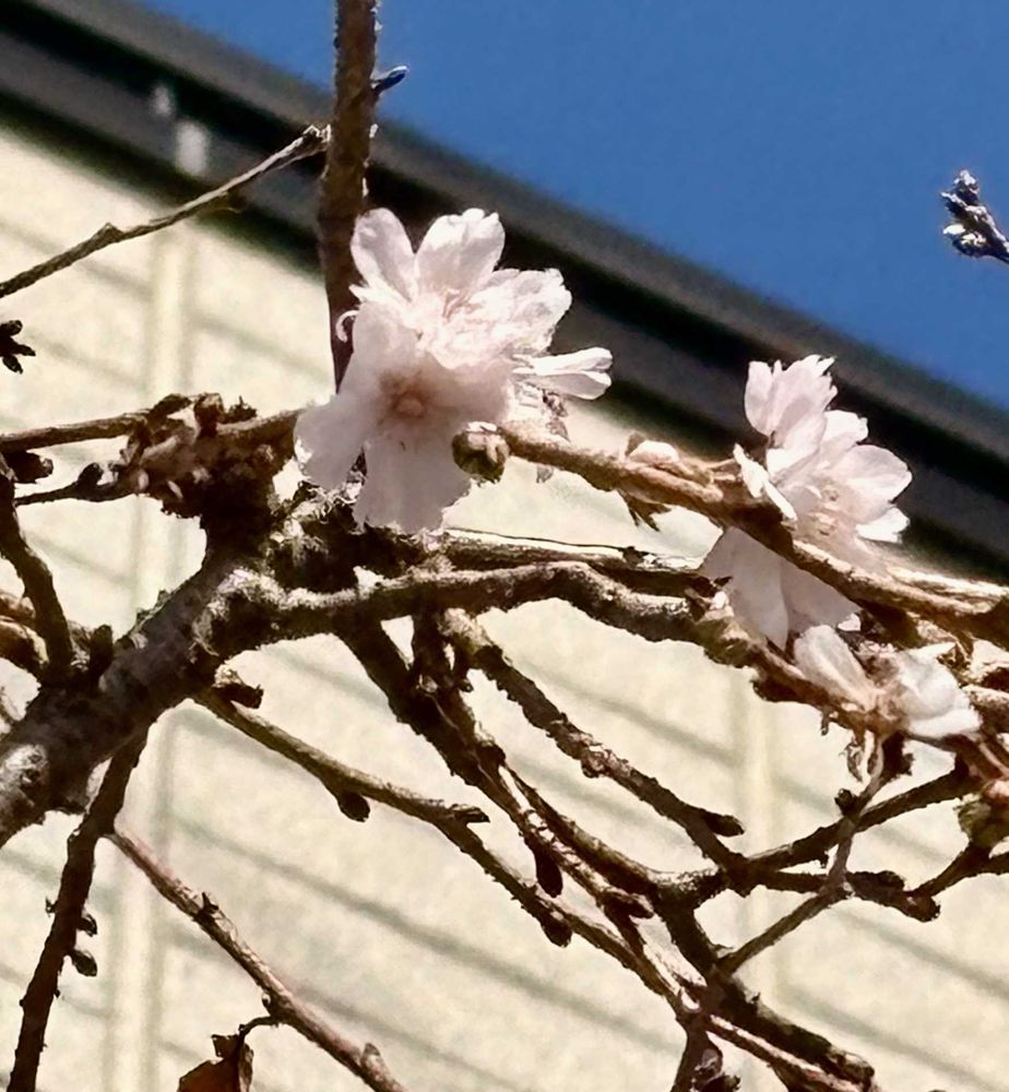 12月。寒い日が続きますね。春では無い時期に咲くさくら 🌸 』の木。移動中に花数も多く咲いているのが目に止まりました。 👀