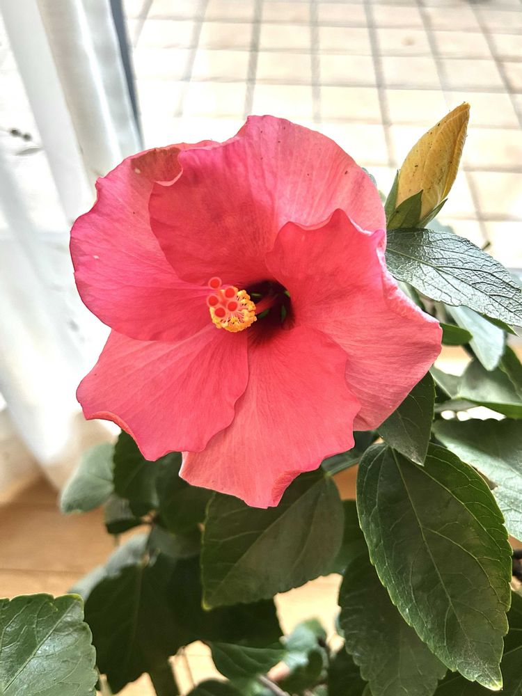 横の蕾は黄色なのに、このお花だけピンクのハイビスカスが咲いています👀❣️
