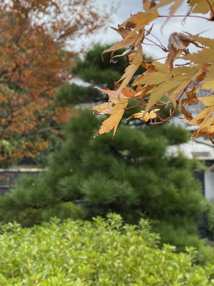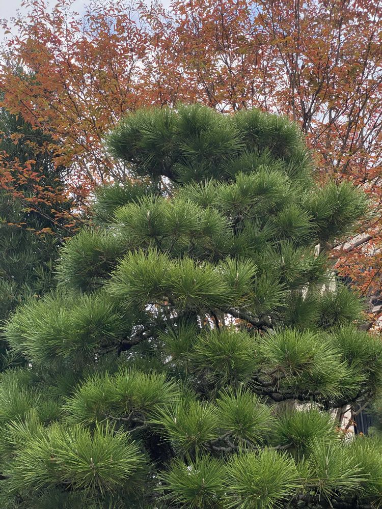 枯れたモミジに、青々とした松の対比に、心惹かれました😊