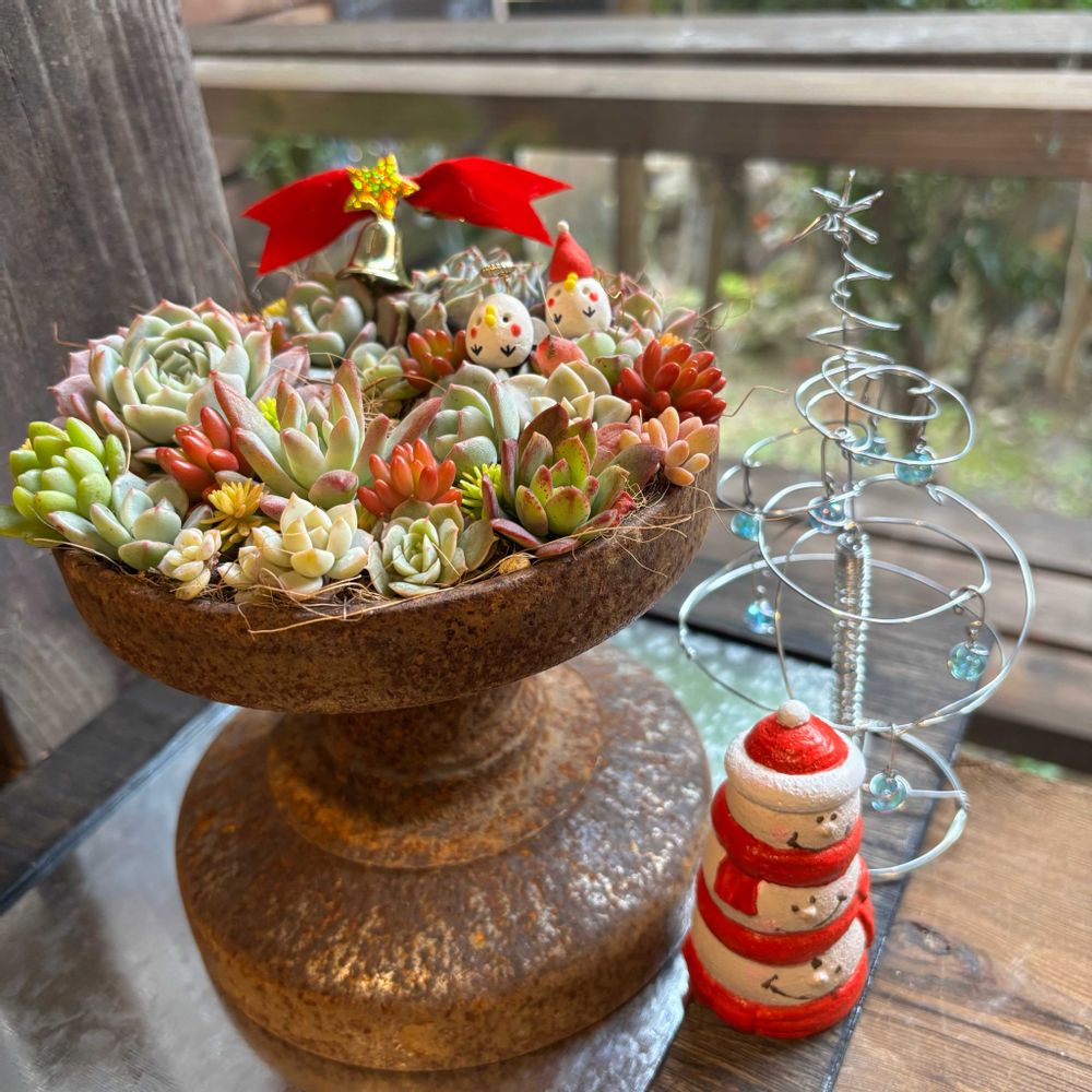 赤に緑に黄色にクリスマス寄せ植え素敵です✨