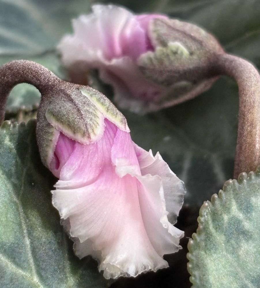 お隣さんはしっかり花茎を伸ばして咲いているというのにお寝坊さんですね😌