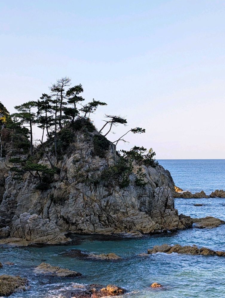 冬は風が強く波がスッゴク高くなり岩も松も打ち付けられるけどそこが居場所みたい身をまかせる風景ですね~🌊🪨🌊🌊
