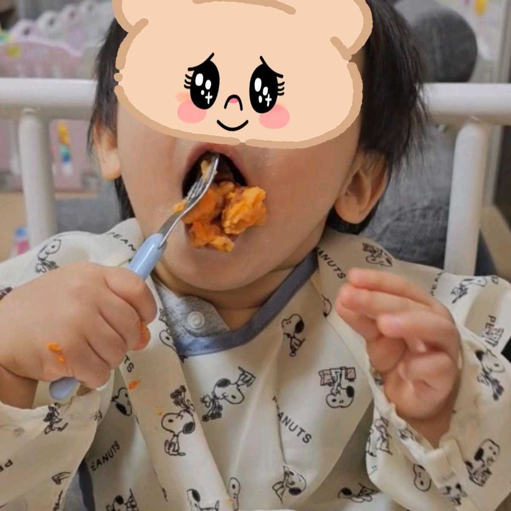 4️⃣娘の子供、弟❣️ホーク🍴を使ってチーズチヂミを大きなお口でパックン得意顔🤤😋✌️