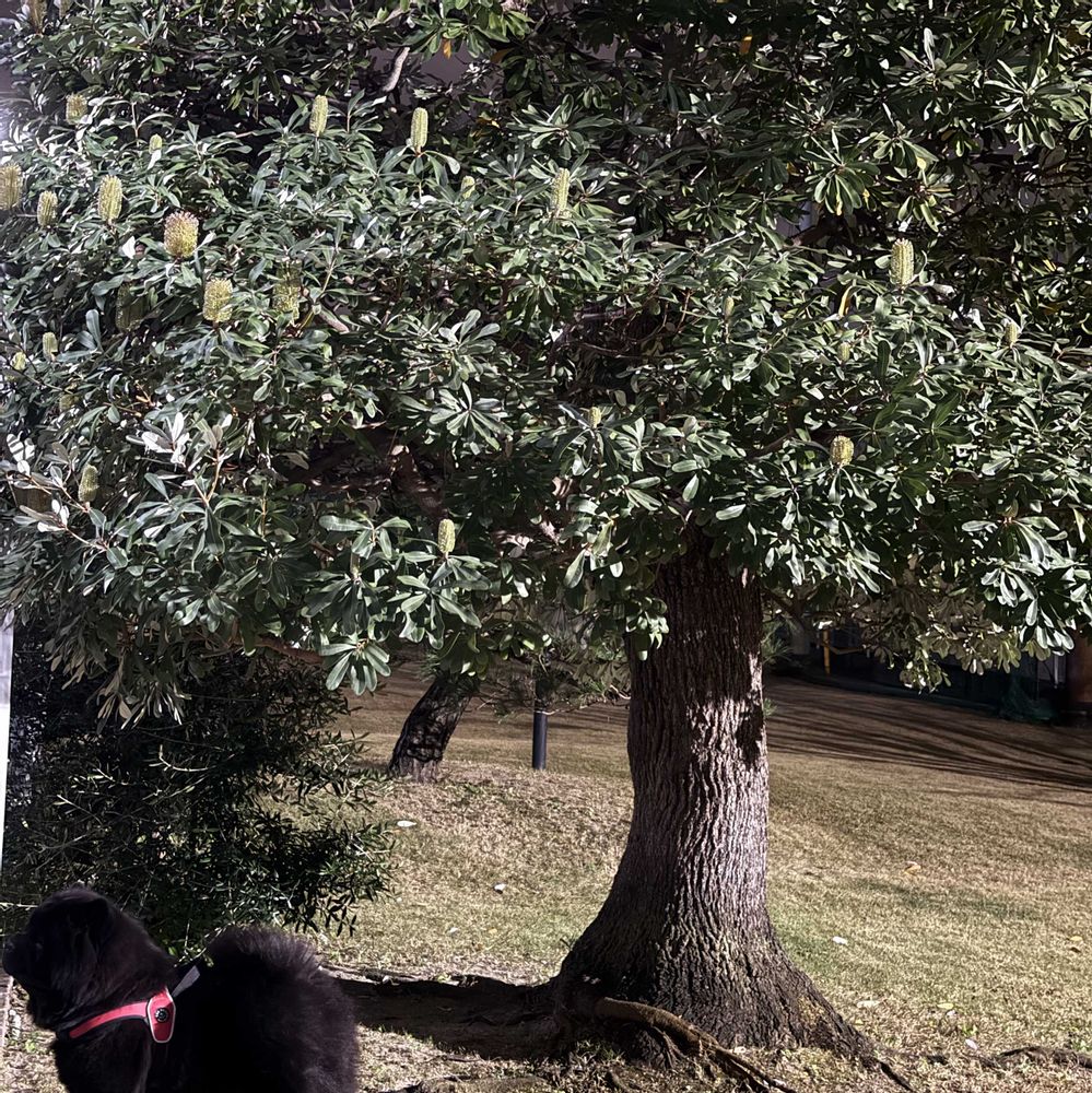 まだまだ、花がついてるバンクシアとわが家のワン🐕🦺。。
