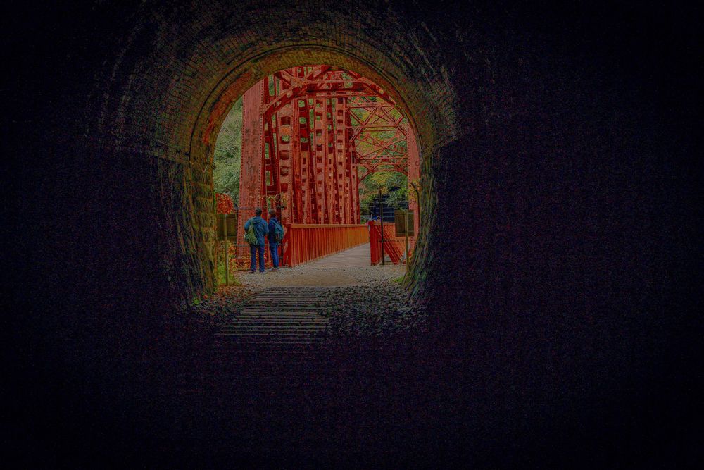 長いトンネルを懐中電灯を照らしながら歩き、鉄橋も渡ります😄😄