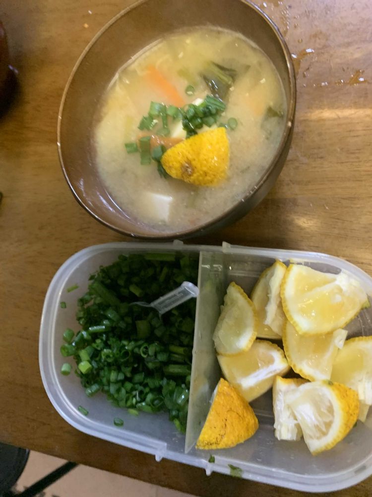 お味噌汁に、実生柚子の実をカットして、ネギと一緒に入れて…一味違います♪