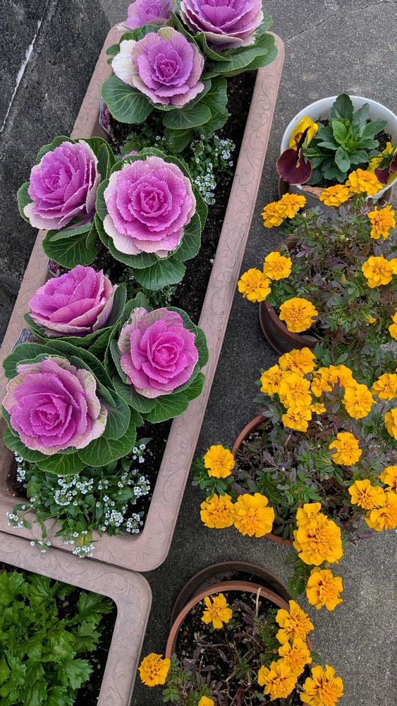 皇帝ダリア,マリーゴールド,ミニ葉牡丹の投稿画像