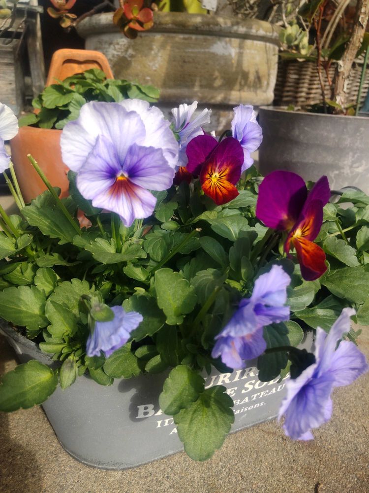 一緒に買っていたビオラでしたが、なかなか蕾がなくてようやく咲いた