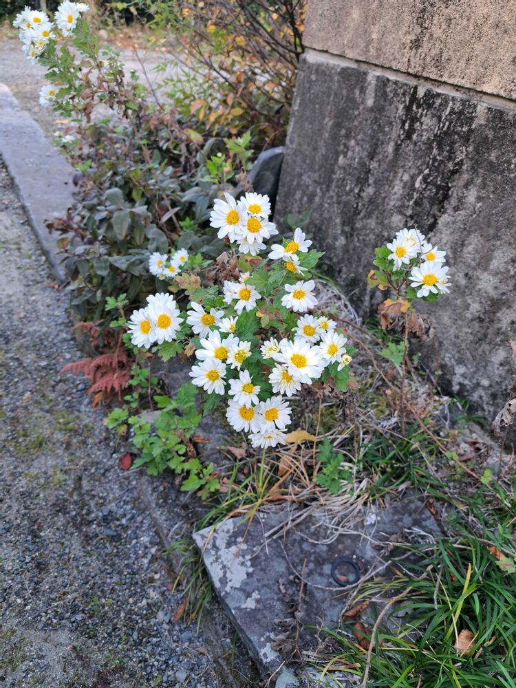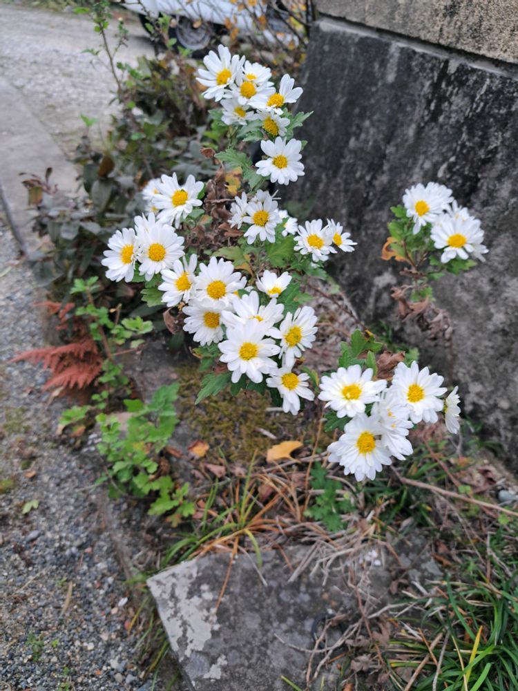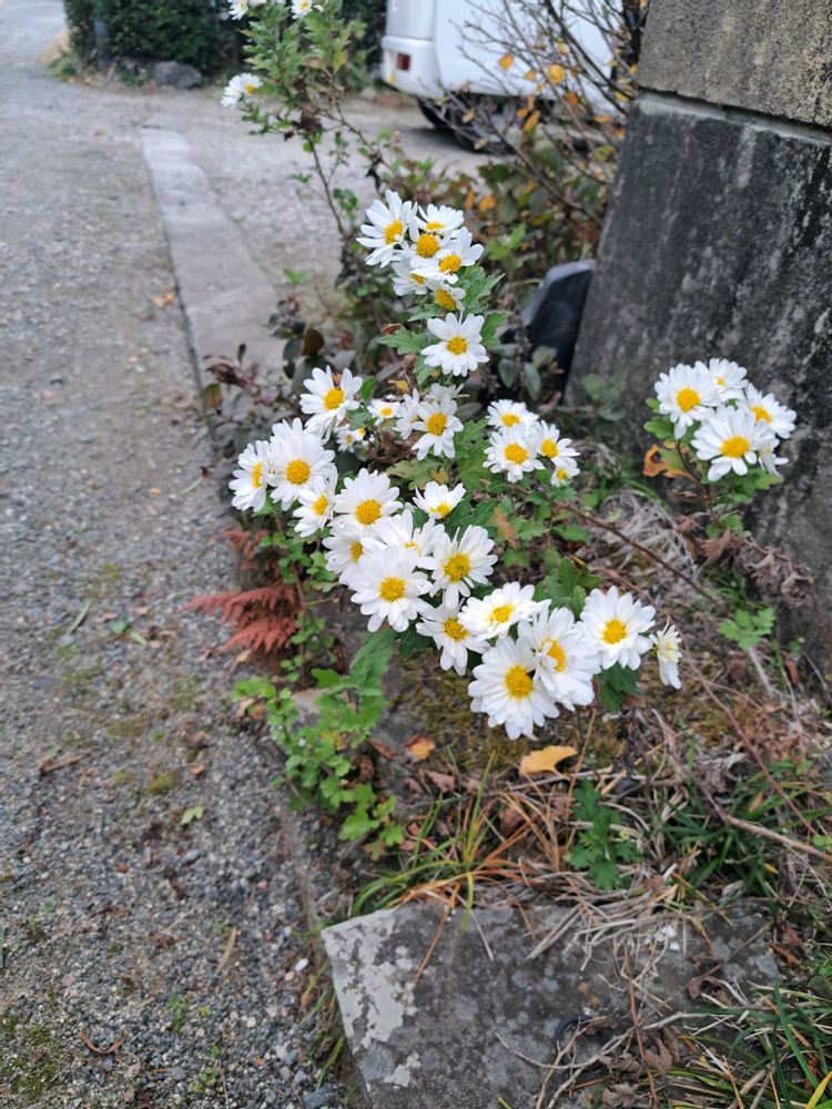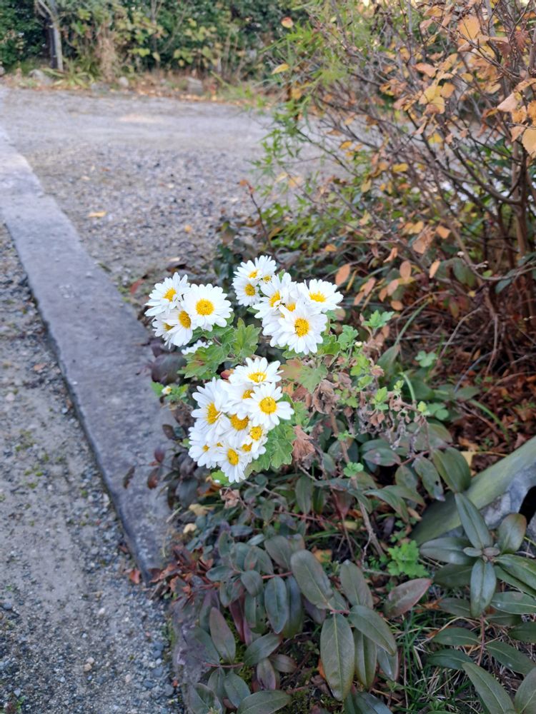 先日、近所を散歩していたら、白い小菊が咲いていました。冬の曇り空でも、可憐な雰囲気で癒されました😊