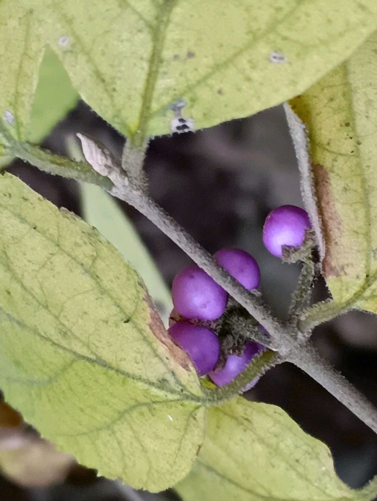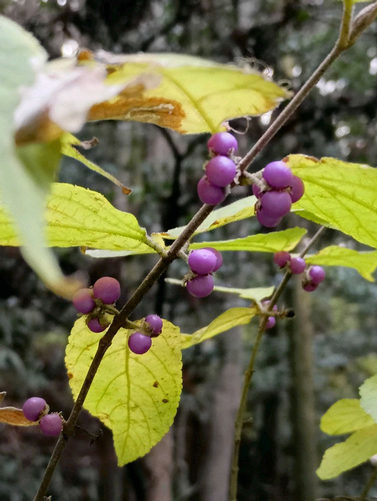 紫色の実は、少し、艶がなくなり、色あせてきたように思いますが、
