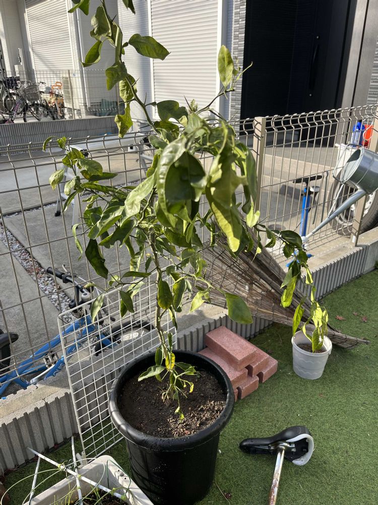 種から育てたみかん(2枚目)を鉢に掘り上げて、金柑(1枚目)を植えました!