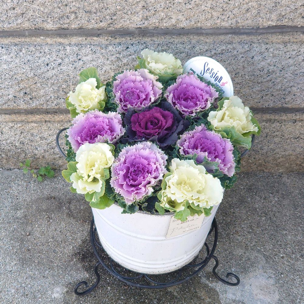 ①ハボタンフェアでお迎えしたハボタンで寄せ植え🌱✨バリ可愛い〜🥰自画自賛😂💕