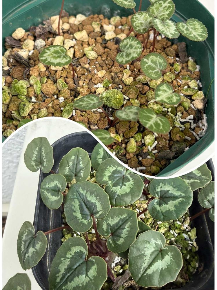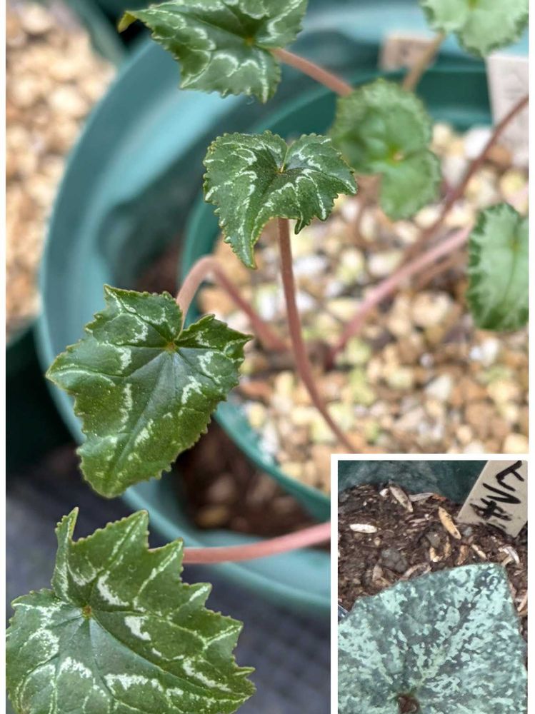 ③実生のイケメン原種シクラメンヘデリフォリウムと渡辺花店の個性的な品種クレチカムです🌿