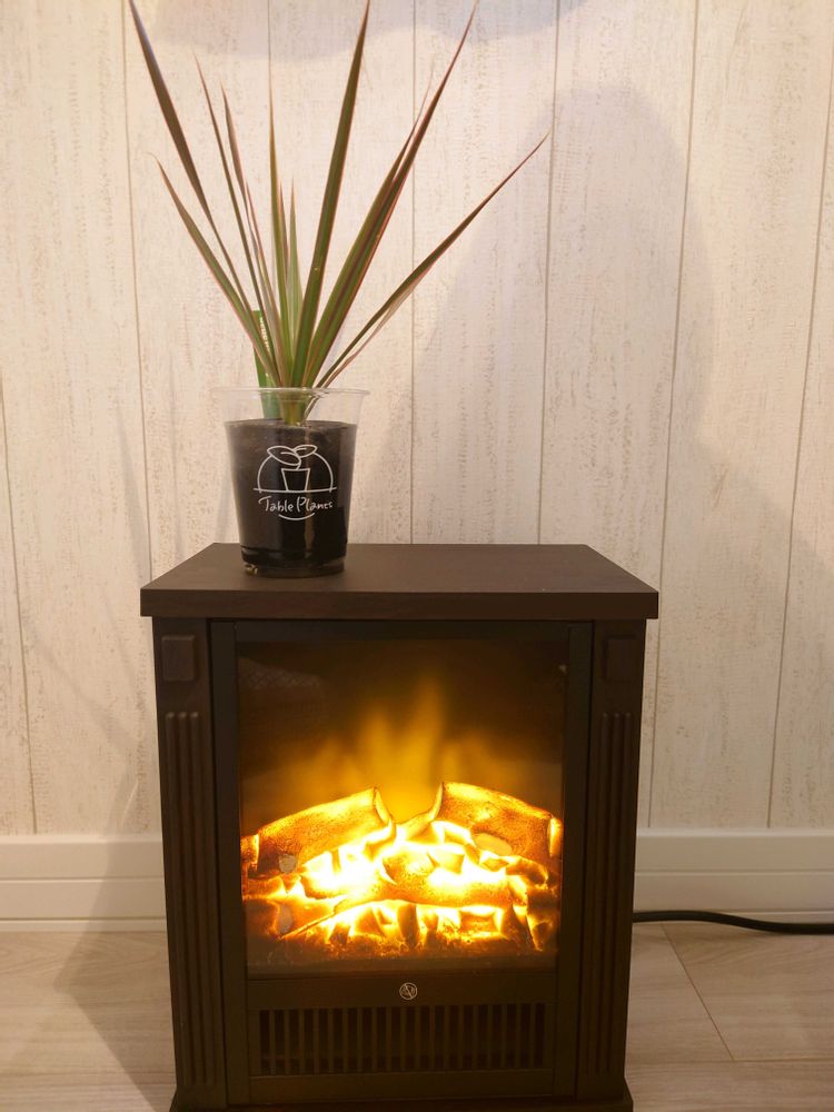 小っちゃな暖炉に置いた小っちゃなドラセナ。