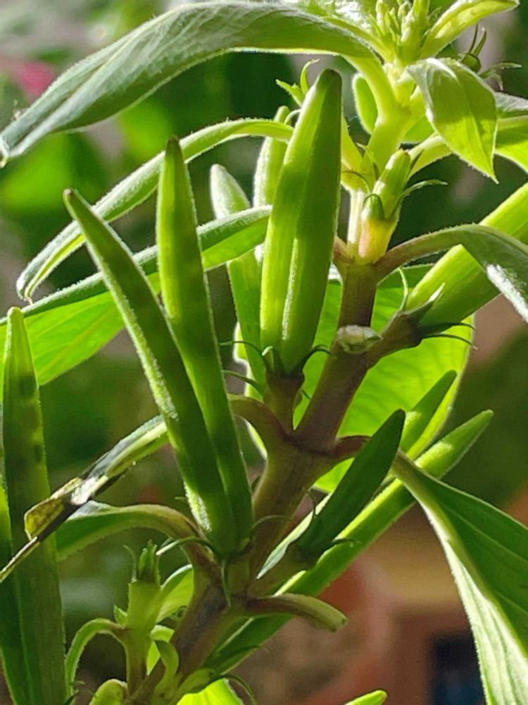 種は花が咲き終わった後にできるサヤ🫛のような細長い「種鞘(しゅしょう)」と呼ばれる部分から種がこぼれ出て採れます。