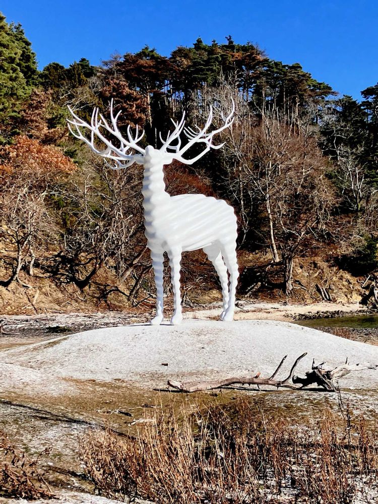 東日本大震災からの復興と未来への希望を象徴して、神話の神鹿をモチーフにした巨大な白い鹿のオブジェなんですね!