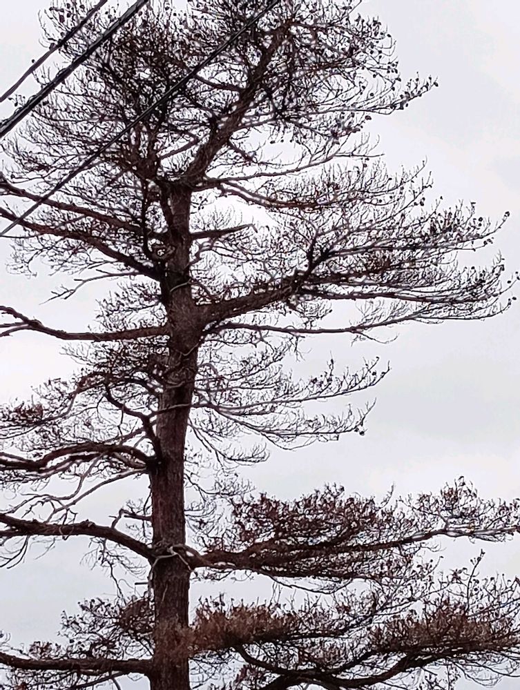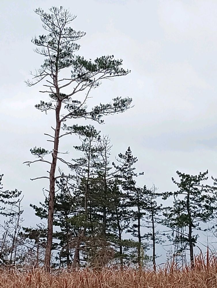 今日のお花松💚所変われば、風雪に耐えてそそり立つ松、刈羽の松の下を🛵で走って、とうりんぼう温泉♨️へ、足元には、セイタカアワダチ草のフワフワが😊が