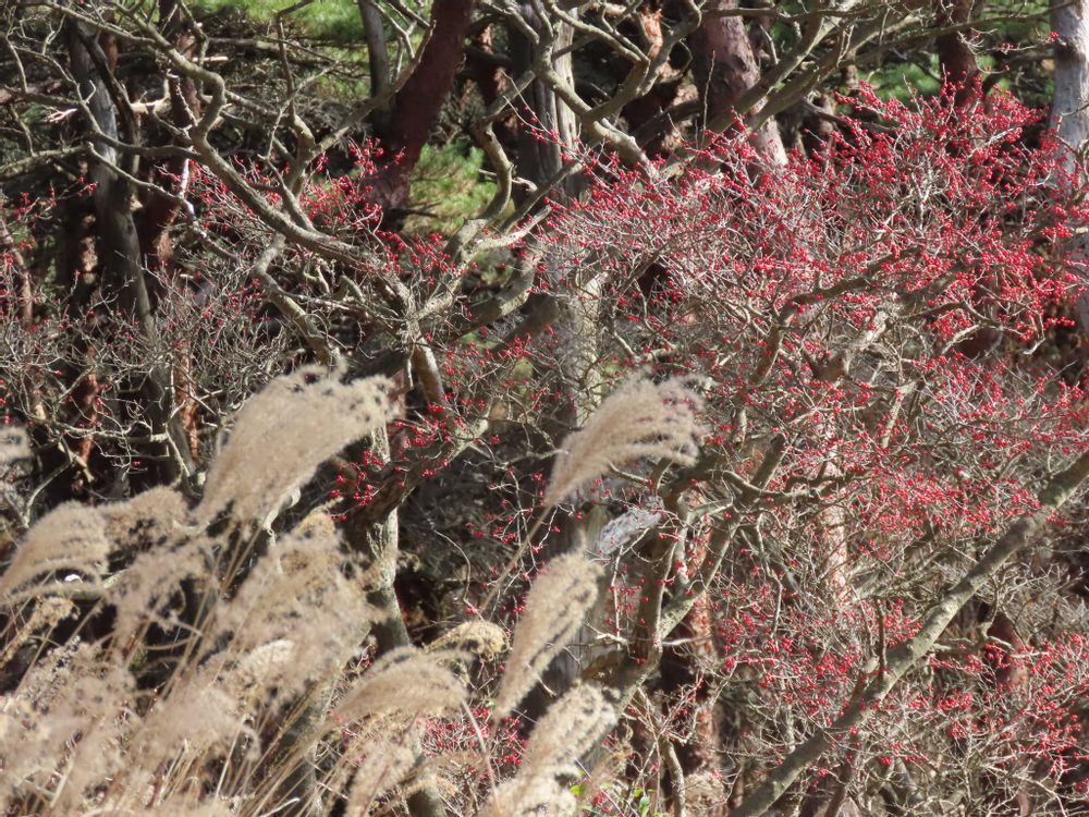 花と虫と風と空とさんのウメモドキ,ウメモドキ,ススキの投稿画像