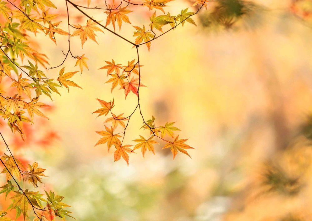 バックの黄色く色づいた葉をぼかして紅葉と調和させてみました