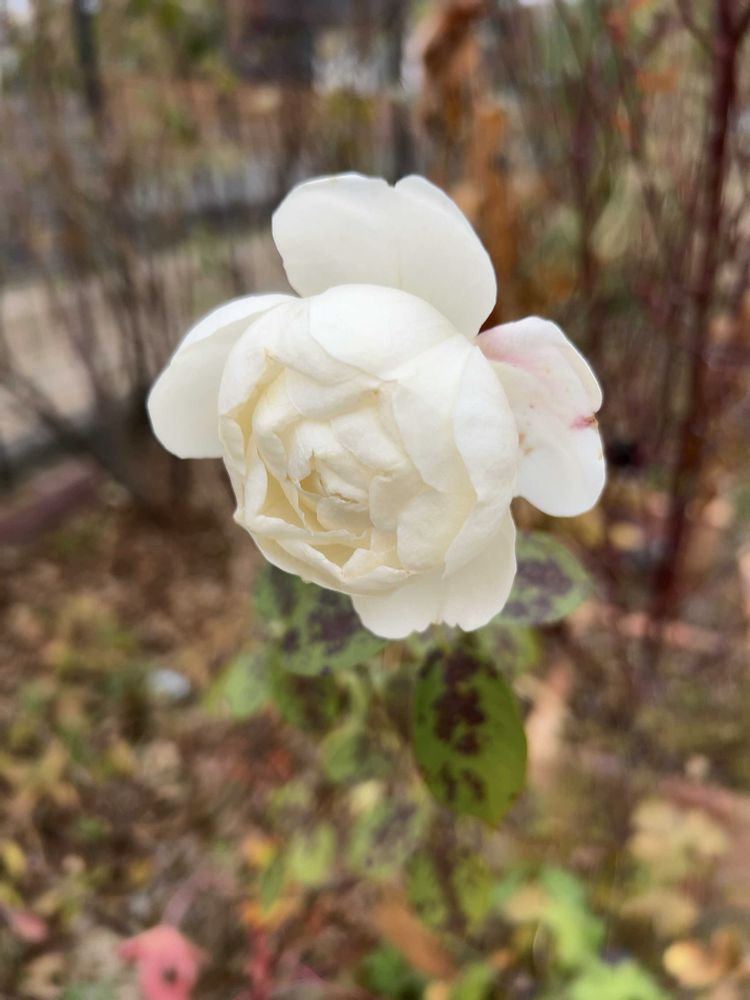 なんか冬枯れの感じが好きで、ポツポツ咲いてるバラと落葉だらけの庭を、意味もなく両手を腰に当て仁王立ちで眺めてます😅