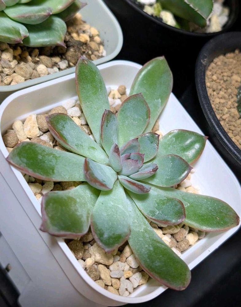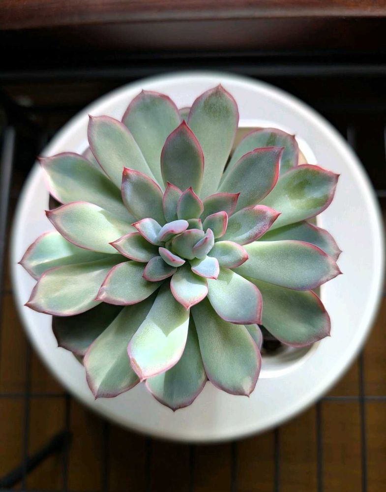 今日は以前にも登場した、エケベリア_ヘラクレスです。ダイソー産で、今の時期よく売っているかと思います。2枚目が去年迎え入れた時の写真です。ダイソーで小さくて葉も少ない株でちゃんと育つの??と疑問を持っている方もいると思いますが、こんな感じでよく育つのでお勧めです。ちょっと紅葉してきました。ほんのり縁がピンクに。