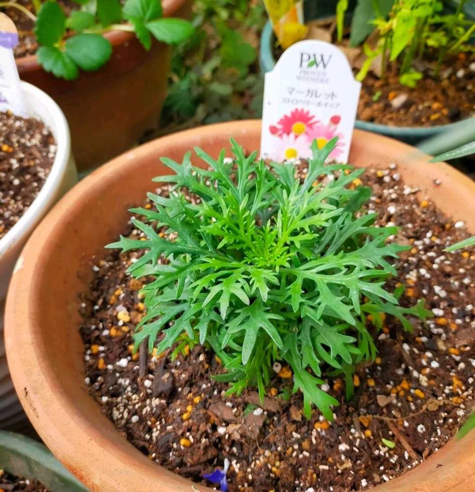 PWのマーガレット・ストロベリーホイップの苗も鉢植えにしました🌼