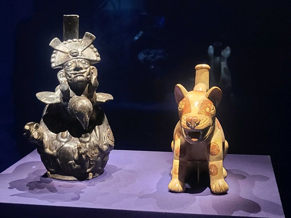 5️⃣山々の上を飛ぶ神アイ·アパエックと斑点のある犬の鐙型注口土器