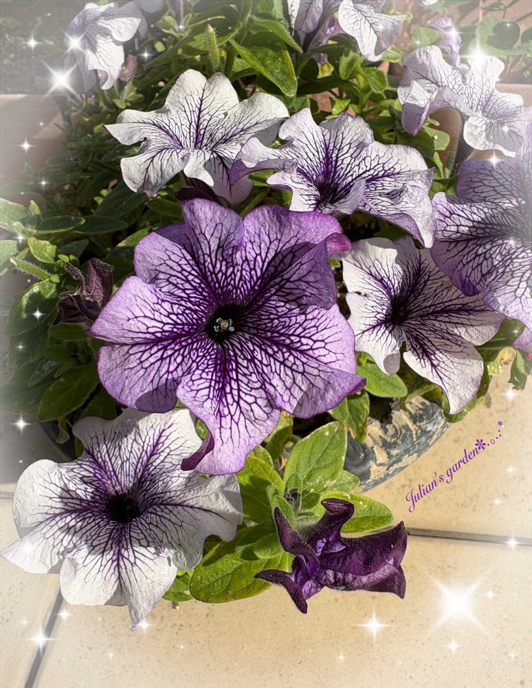 ⑤ずっと咲いているペチュニアさん🤍💜まだ蕾があるのでもう少し咲いてくれるかな🤔頑張ってね💪